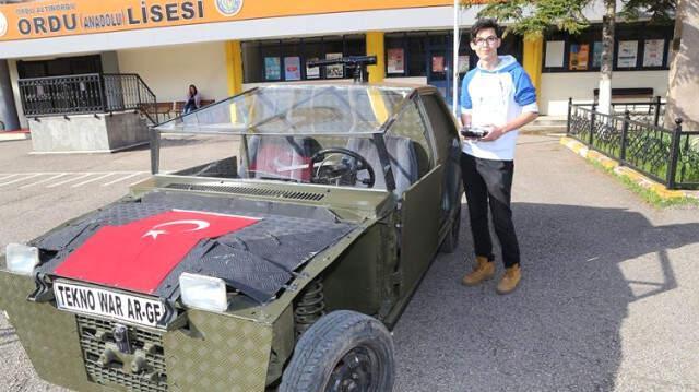 Ordu'da bir grup lise öğrencisi, hurda otomobilin parçalarıyla "Akıncı Seyt 4" adını verdikleri, görsel ve sesli uyarı gönderebilen, askeri araç üretti.