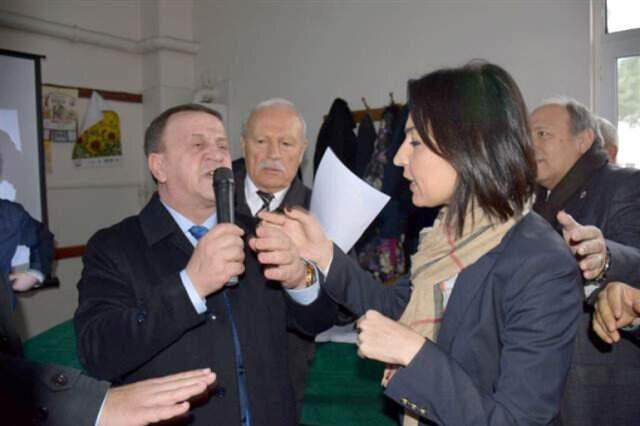 Kısa süre mikrofon gerginliği görülürken başkan Işıklar, "Söylem biçiminden dolayı hanımefendinin konuşmasını doğru bulmuyorum. Devletin memuru varsa, burada devleti var eden halk var! Önce bir kere saygılı olacaksınız söylem biçiminiz yanlış, böyle bir söylem biçimi yok. Siz bir kere bu söylem biçimi ile toplantıya başlarken yanlış yaptınız. Bu toplantı, bu şekilde burada yapılamaz çünkü belediyeyi sayıp bir tebligat bile göndermediniz. Burası sizin çöplüğünüz değil" dedi. Görevli mikrofonu almak isterken Başkan Işıklar izin vermeyerek köylülerle birlikte kahveden çıktı.