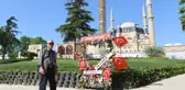 Meydanda geçen yıl ekimde başlanan çevre düzenlemesinin bitmesini dört gözle bekleyen Selimiye Meydanı'nın değişmez isimlerinden seyyar fotoğrafçı Şemsi Türk, düzenlemenin tamamlanması ile seyyar fotoğraf panosuyla her zamanki bulunduğu alana yerleşti.