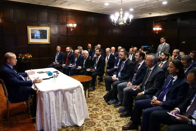 Erdoğan, ABD ziyaretinde kendisini takip eden gazetecilerle...