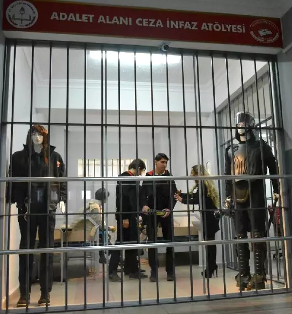 Adalet bölümünü okuyan toplam 68 öğrenci, uygulama sınıflarında, senaryo gereği mahkeme kuruyor ve suçluları yargılayıp cezaevine gönderiyor. Ayrıca öğrenciler, okul içinde demir parmaklıklar ile kaplanan ve içerisinde maket mahkumların konulduğu cezaevinde mahkumların üst aramalarının nasıl yapıldığını, kelepçenin ne şekilde takıldığını öğreniyor.