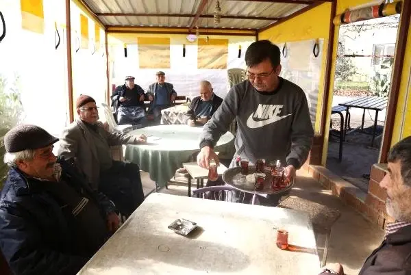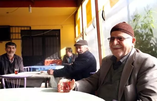 Antalya'da 5 aylık eksik prim yatırdığı gerekçesiyle kesilen emekli maaşını 3,5 yıl aradan sonra yeniden almaya başlayan Mehmet Çiçek (85), köy kahvesindeki herkese çay ısmarladı.