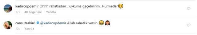 Bunun üzerine Kadir Çöpdemir, "Oh rahatladım, uykuma geçebilirim." diyerek yanıt verdi.