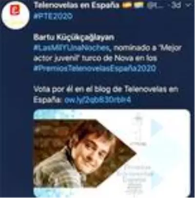Oyuncu, sosyal medya sayfasından haberi şu notla duyurdu: "Ya beni hala Binbir Gece vasıtasıyla İspanya'da 'umut vadeden genç oyuncu' diye aday gösteremezsiniz. 37 yaşındayım ben. Ne olur, nasıl oluyor bu iş bilmiyorum ama oy verin, alalım şunu be... Bayrağımızı İspanya'da dalgalandıralım."